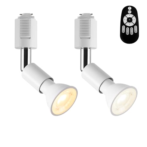 LVWITダクトレールライト、E26口金、6W(40W相当)、調光調色、リモコン付き、角度調節可能。昼光色・昼白色・電球色への変更可。常夜灯機能あり。2個セット、電池は別売。