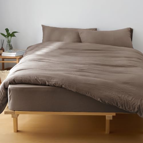 HARMIO布団カバーセットは、洋式・和式両方に対応。掛け布団カバー、ボックスシーツ、枕カバーの3点セット。洗いざらしのピーチスキン加工でやわらかい肌触り、速乾性。オールシーズン使用可能。