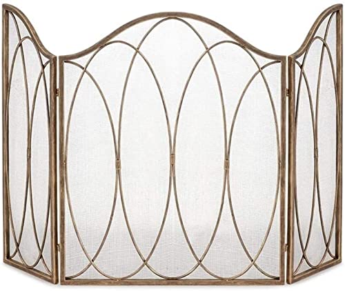 スクリーンファイアーガードは、装飾的な錬鉄製で大きな暖炉パネルを備え、スタンディングゲートと金属メッシュカバー付き。スパークガードや薪ストーブに最適。
