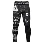 [ORBU] コンプレッションパンツ メンズ トレーニング 筋トレ プリント柄 スポーツタイツ 通気 吸汗 速乾 パワーストレッチ スポーツ ランニング スパッツ(ブラック2(もんじ)-M)の高価買取