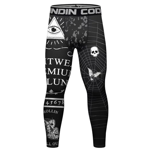 / [ORBU] コンプレッションパンツ メンズ トレーニング 筋トレ プリント柄 スポーツタイツ 通気 吸汗 速乾 パワーストレッチ スポーツ ランニング スパッツ(ブラック2(もんじ)-M)