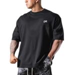 オーバーサイズのメンズジムTシャツ。半袖でストレッチ性があり、吸汗・通気性に優れたフィットネスウェア。おしゃれな無地デザイン、トレーニングにも最適です。サイズ:ブラック-L。