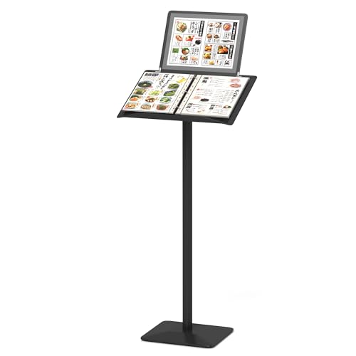 GOOFCXO メニュースタンドは、頑丈な基盤付きでA4サイズのポスターや案内をしっかり支えます。ウェイティングボードや案内板としても最適で、床に立てて使用可能です。