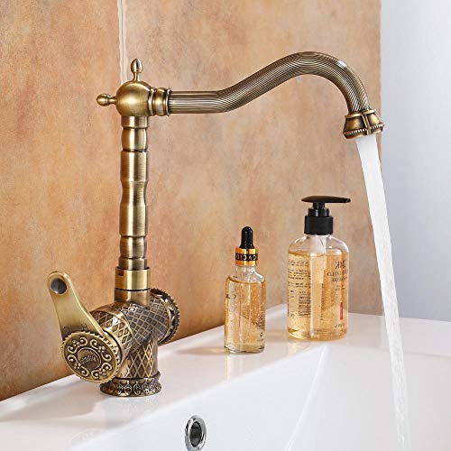 すべての銅製のキッチンシンク用蛇口。ソリッドブラスとアンティークブロンズのデザイン。シングルハンドル式、デッキマウントでホット&コールドウォーター対応。