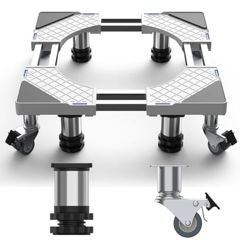 DEWEL 冷蔵庫台 かさ上げ台 強化版は、冷蔵庫の高さを調整し、収納スペースを有効活用。耐荷重量が向上し、安定感抜群。頑丈な脚部で、掃除も簡単です。