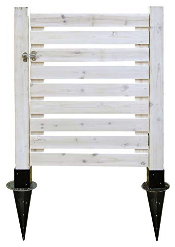 ガーデンガーデン 天然木製シンプルゲートセット 片開き 門扉 埋め込み設置用 [ゲートパネル1枚+閂錠+蝶番+溝ありポール2本+埋め込み金具2個] ウォッシュホワイト JSBF-GT600UBSET-WHTMIZOの製品情報