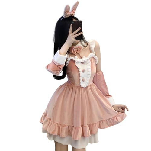 [DECEED] サンタ コスプレ レディース 4点セット 可愛い サンタコス ボウホルタードレス クリスマス 仮装 コスチューム 女の子 記念日 誕生日 新年 プレゼント(ピンク、Mサイズ)