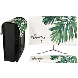 HIGHAWKモニターカバー セット PCカバー ディスプレイ キーボードカバー 防塵 保護 液晶 可愛い(葉B 27インチ)