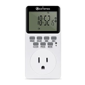 KETOTEK デジタル プラグイン タイマー コンセント ソケット 20 オン/オフ プログラム可能なタイマー スイッチ 24 時間 7 日 プログラムとカウントダウン 省エネ タイミング プラグ ソケット (15A 1725W 115VAC)