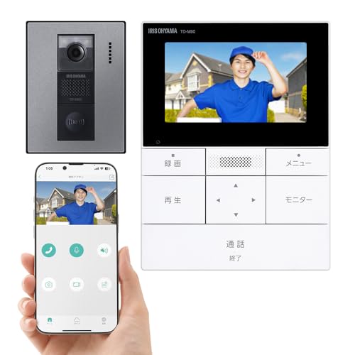 アイリスオーヤマのテレビドアホンTD-SM5030CT-BSHは、スマホ連動、動き検知で自動録画、防犯対策に最適です。機械音声応答機能付きで操作も簡単。ブラックフレーム/ガンメタリックのスタイリッシュなデザイン。
