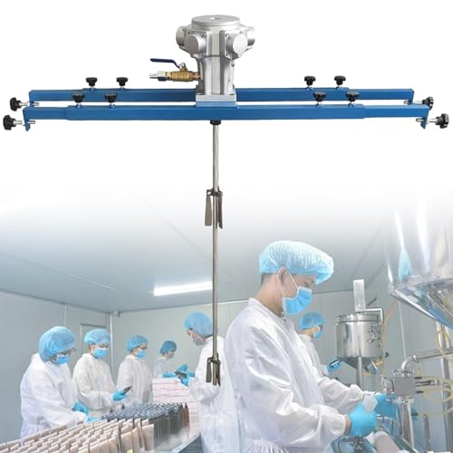 IBCエア撹拌機は、タンクペイントミキサーで水平調整が可能な720〜1200 mm。264ガロンの折りたたみ式ブレードと調整可能な速度0〜1300 RPMを備えています。
