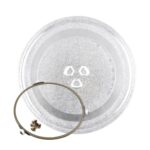 電子レンジ用耐熱ガラスプレート。245mm、255mm、270mm、315mmのサイズ展開。回転ロカプラー付きで耐久性抜群のレンジ用丸皿。