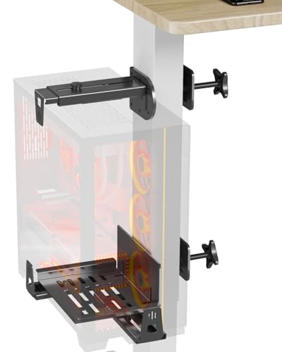 JOY workerのデスク下PCマウントは、スタンディングデスクに最適。クランプ式で安定し、最大44ポンドを保持。追加保護アーム付きで調節可能なCPUホルダー、カラーはブラック。