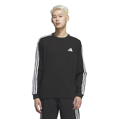 アディダスのエッセンシャルズ プラス ルーズフィット スリーストライプス 長袖Tシャツ(ブラック・Lサイズ)は、快適な着心地とスタイリッシュなデザインが特徴。カジュアルな普段使いに最適なアイテムです。