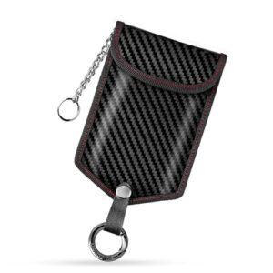 [T-carbon] 電波遮断ポーチ スマートキーケース ポーチ リレーアタック防止 対策 カーセキュリティ 車の盗難防止 信号遮断ポーチ クリップ付き (ブラック)