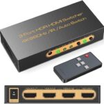 HDMI切り替え器2.0は、5つの入力源を1つの出力に切り替え可能。4K@60Hz、HDCP2.2、HDR対応。PS5、PS4、Nintendo Switchにも対応し、便利なリモコン付き。