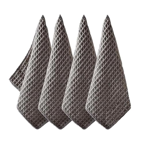 強力吸水のマイクロファイバー製ふきん。速乾性が高く、キッチンや食器拭き、ガラス拭きに最適。ワッフル調のデザインで、4枚セット(30x30cm)で便利に使用できます。掃除用品としても活躍。