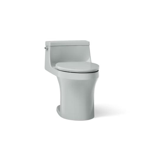 KOHLER San Souchiは、快適な高さのコンパクトで細長いトイレです。1.28ガロンのアクアピストン洗浄テクノロジーを搭載し、左手用トリップレバー付き。サイズは25.31 x 16.38 x 27.75インチ、モデルK-5172-95。