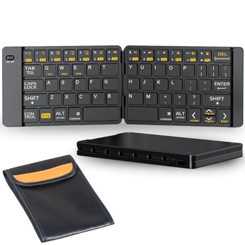 新型 Bluetooth キーボード 折りたたみ式 ワイヤレス キーボード 157g 超軽量 薄型 無線 レザー収納袋付きワイヤレスIOS/Android/Windows に対応 スマホ用 スタンド付 折りたたみ式 パソコン用 タブレット/スマートフォンに対応(イエロー・キーボード+収納袋)の製品情報