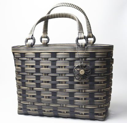 クラフトバンド(紙ばんど)で作るかごバッグトライアルキット(ブラック・大)は、初心者でも簡単に作れるDIYキットです。必要な素材が揃っており、自宅で手軽にオリジナルのバッグを楽しめます。