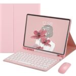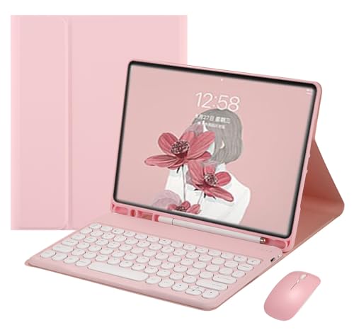 Galaxy Tab A9+ 11インチ用の可愛いピンクのキーボードケース。丸型キーとカラーキーボードが魅力で、マウス付き。マグネット分離式で使いやすいデザイン。女性におすすめのキャンディーカラー。