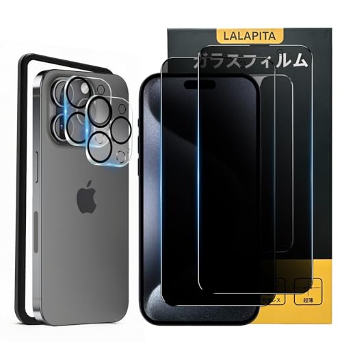 iPhone 14 Pro用の覗き見防止フィルム2枚セット。180度の覗き見防止効果を持つ強化ガラス製。カメラレンズ保護フィルムとガイド枠付きで簡単装着。