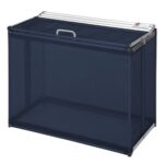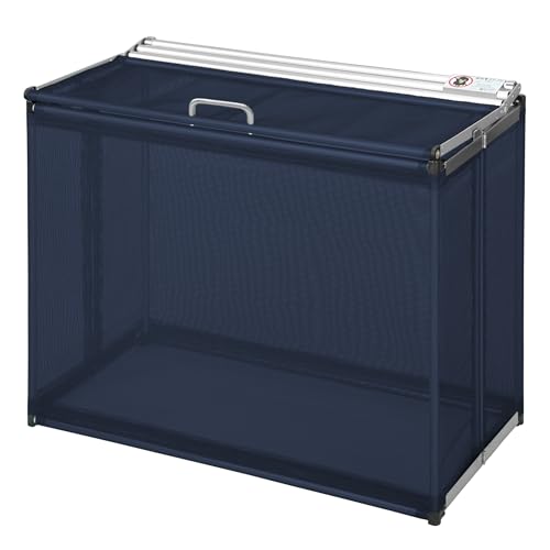 日本製のカラスよけネット付きゴミ箱収集庫。大容量約270L、幅90cmでネイビーブルー。折りたたみ式、軽量でコンパクト、屋外での使用に最適な防鳥ネット搭載です。