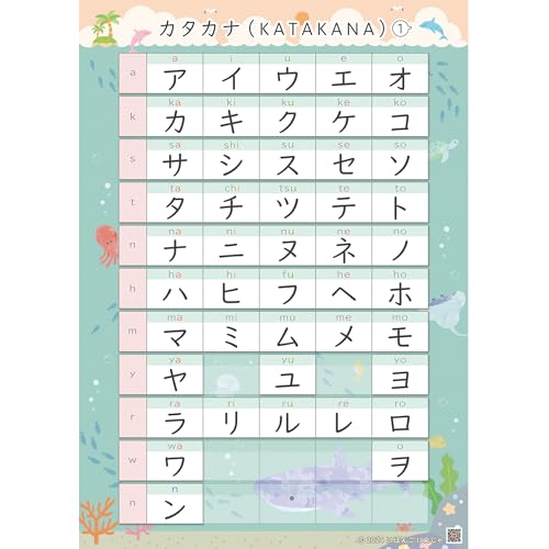 きれいなカタカナ学習ポスター(A1マット紙・両面印刷)です。横書きデザインで、外国ルーツの留学生向けに最適。日本語教育や知育に役立ちます。視覚的に楽しく学べるアイテムです。