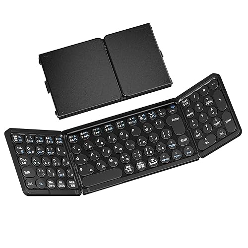 Omikamo キーボード Bluetooth 折り畳み式 ワイヤレス JIS標準日本語配列 丸型 可愛い テンキー付き フルサイズ 小型 左右Shiftキー/L型Enterキー搭載 ipad iOS/Windows/Mac対応 3台デバイス対応 パンタグラフ コンパクト Type-C充電式 スマホ用キーボード タブレット パソコン 静音 軽量 日本語説明書付(黒)の製品情報