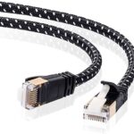 サンワサプライ CAT7細径メッシュLANケーブルは、0.5mの長さで10Gbps/600MHzの性能を持ち、RJ45コネクタにツメ折れ防止機能を搭載。ブラック&ホワイトのスタイリッシュなデザインです。
