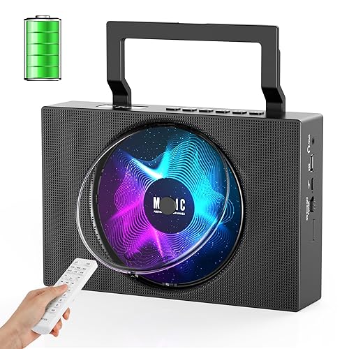 Guerayの卓上CDプレーヤーは、Bluetooth送受信対応で充電可能。スピーカー内蔵のポータブル設計でUSB再生やAUX入力、ワイドFMラジオも搭載。A-Bリピート機能や定時OFF機能付き。防災や語学学習にも最適。PSE認証済み、日本語説明書付き。