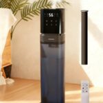 KEECOONの大容量8L超音波加湿器は業務用に最適で、透明タンクとタワー型デザイン。4重除菌、アロマ機能付き。切れタイマー、静音、省エネ、湿度自動調整で便利。連続48時間稼働、上から給水。リモコン操作でお手入れも簡単。
