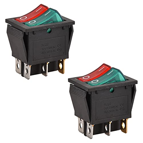 Heschen ダブルロッカースイッチ、ON-OFF、SPST、6端子、レッドグリーンライト、16A 250VAC、2パックの高価買取