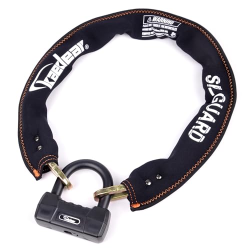 Kaedearのバイク用チェーンロックは、長さ1000mm、スチール製で9mmのスクエアチェーンを採用。頑丈なパッドロックが付属し、盗難防止に優れています。型番はSP-GUARD KDR-LK2-1000。