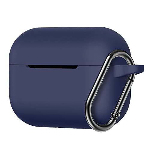 ag COTSUBUのイヤホン収納ケースは、ダークブルーのシンプルでおしゃれなデザイン。傷つき防止のソフトシリコン素材とカラビナ付きで持ち運びも便利。