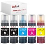 KETA-5CLはエプソン対応の高発色互換インクボトルで、5色パック各70mlが標準の1.8倍大容量。EW-M752T、EW-M752TB、EW-M754TW、EW-M754TBに対応し、個別包装と国際認証を受けています。
