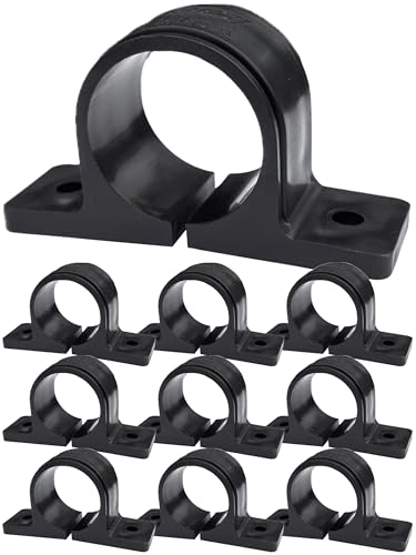 興栄化成の樹脂サドルバンド48.6mm 40Aは、単管パイプの固定に適したジョイント金具です。壁面の配管や止め金具として使用可能で、黒色の仕上げが特徴です。10個入りです。