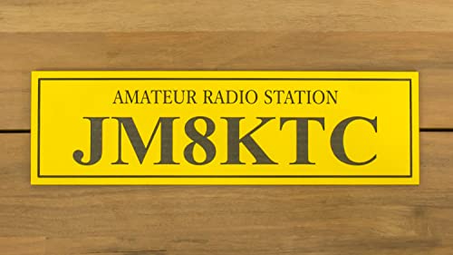 アマチュア無線局コールサインプレート (45mm×150mm×1.5mm)【黄/黒】。レーザー彫刻加工でご希望のコールサインを作成。穴開け可能。ギフトメッセージでコールサインと穴をお知らせください。クリックポストで発送。