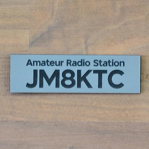アマチュア無線局コールサインプレート(24mm×80mm×1.5mm)をレーザー彫刻加工します。ステン調/黒の二層アクリル板。穴開け可能。コールサインと穴の有無をギフトメッセージでお知らせください。クリックポストで配送可能。