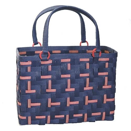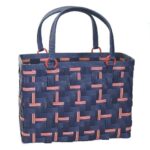 あじろ編み カゴバッグ作成キットは、濃紺と赤のクラフトバンドを使用した中級者向けの商品です。おしゃれな模様のバッグが作れる取扱説明書付きのトライアルキットです。