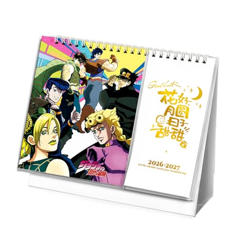 ジョジョの奇妙な冒険の卓上カレンダー。2026年・2027年対応、アニメキャラクターのデザインで萌えグッズとしても人気。家庭用やオフィスに最適、実用的で新年やクリスマスのギフトにもぴったり。