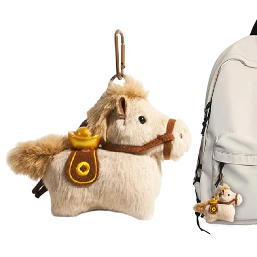 馬バッグチャームは、柔らかいぬいぐるみフィギュアで、軽量クリップアタッチメント付き。耐久性のある装飾ディテールが特徴のトラベルアクセサリーです。子供から大人まで、動物愛好家やコレクターに最適!