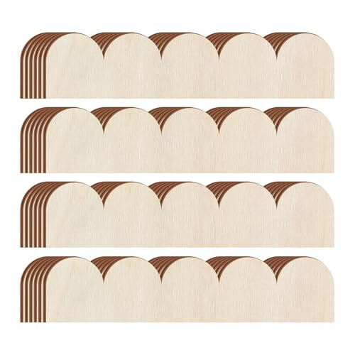 スカラップ木製装飾トリム材24個セット。未加工エッジで手作りパネルに最適。DIY工作やクリスマス、壁、キャビネット、棚、窓、ドアに利用可能な未仕上げ仕様の木製トリムモールディング。