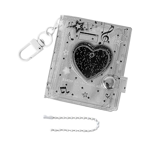 ミニアルバムキーチェーンとハートデザインフォトカードコレクションブック。光沢のあるクリアアルバム、24ポケット付き。2インチ写真収納、学校や旅行のディスプレイに最適。