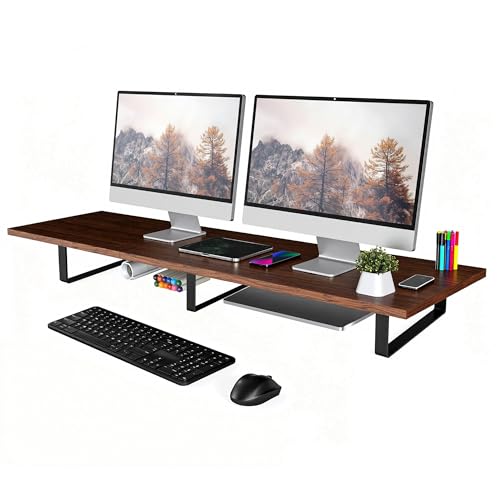 VECELO モニター台 モニタースタンド 幅100×奥行25×高さ8.6cm 組立簡単 滑り止め キーボード マウス収納 卓上収納 文具収納 目線が上がる 姿勢改善 安定性 猫背防止 机上台 ワーク対策 整理整頓 テレワーク 在宅勤務 オフィス 省スペース ブラウン