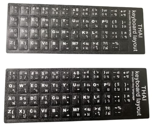 grepoのタイ語キーボードシールは、黒色のラベルで構成され、パソコンのキートップに簡単に貼り付けられます。2枚セットで、タイ語入力をスムーズにサポートします。