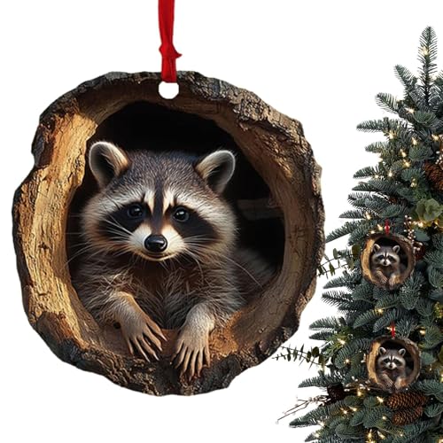 Mivpziskの2Dアクリルクリスマスオーナメント。アライグマ、フクロウ、リス、ハリネズミ、バニー、バードのデザインで、かわいい野生生物の装飾品です。