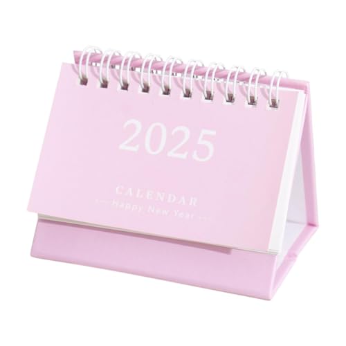 2025年の小型卓上カレンダー。整理と計画に最適なスタンディングタイプ。ピンクのデザインで、学校や家庭のデスクデコレーションにもぴったり。