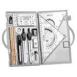 ジオメトリセットの製図キット。プロ用ツールセットで、金属コンパスや三角定規が含まれています。学生や建築士向け、ステンレス/アルミ製。収納ケース付きで、CAD作業に最適です。重さ410g、サイズは28×15.5cm。