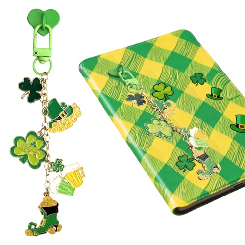 QYRCXX 聖パトリックの日チャームチェーンセット。かわいいシャムロック、ビールジョッキ、グリーンハットのデコレーション付き。Kindle用電子書籍リーダーに最適なアクセサリーです。